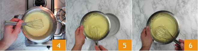 You'll need to whisk vigorously for about half an hour, bringing the temperature between 158°F and 167°F: use a kitchen thermometer to be sure 4. Once you have obtained a frothy and denser mixture, move the bowl into a larger one with cold water 5. Continue stirring until it has cooled down, then place the bowl in the refrigerator until it sets completely 6.
