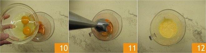 Now add the eggs 10 and blend everything 11 until you obtain a smooth, fairly liquid cream 12. For safety, strain the mixture to remove any seeds.