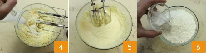 To make the vanilla muffins with sour cherry heart: in a bowl, place the softened butter and beat it with an electric beater (or a stand mixer) together with the sugar (1-2), add the room temperature egg 2, continuing to beat,