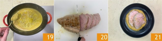 When creamy, add the mustard and stir 19. Make sure the roast is still nice and hot and slice it 20. Serve your pot veal roast on a bed of sauce 21!