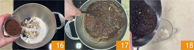 Complete with unsweetened cocoa powder 16, mix carefully and cook for about 10 minutes until everything melts 17. Transfer the mixture into a jug 18.