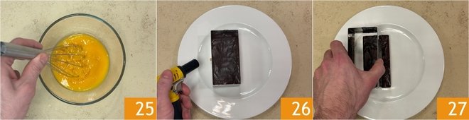 Mix and set aside 25. After the resting time, remove the terrines from the molds; to make it easier, you can slightly warm the edge of the mold with a torch for a few seconds 26 27.