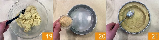 You should obtain a creamy, homogeneous mixture 20. Grease an 8 2/3-inch round pan and dust the bottom with breadcrumbs 20. Pour half of the potato mixture inside and press it with the back of a spoon so that the edges are slightly thicker 21, thus creating a well for the filling.