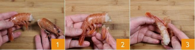 To prepare the venere rice and seafood arancini, start by cleaning the seafood (the heads and shells will be used for the Fish Stock). For the How to clean shrimp, gently detach the head, remove the legs, and peel off the shell: use these parts to prepare the fish stock.
