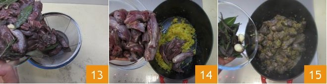 At this point, after removing the meat from the fridge, drain it using a sieve, collecting the marinade in a small bowl 13. Keep the spices aside and add only the meat to the pan with the sautéed vegetables 14, increase the heat and brown for at least 15 minutes, stirring occasionally! Add the spices kept aside 15