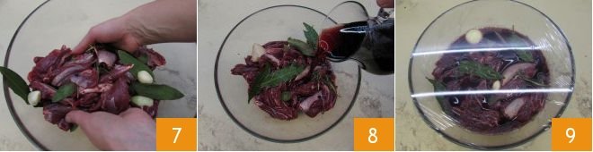 Mix well 7, add the red wine 8, then cover with plastic wrap and let it marinate in the refrigerator for about 20 hours 9.