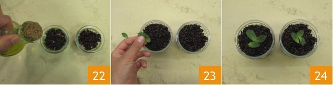 Finally, garnish with a drizzle of oil on the surface 22 and some fresh mint leaves 23: your Venus rice and swordfish cups are ready to be served warm or at room temperature 24!