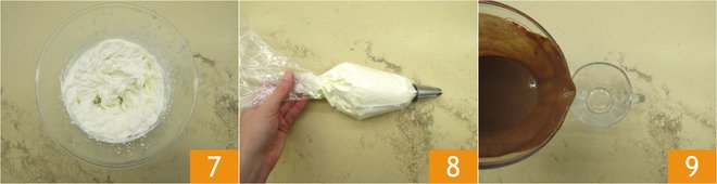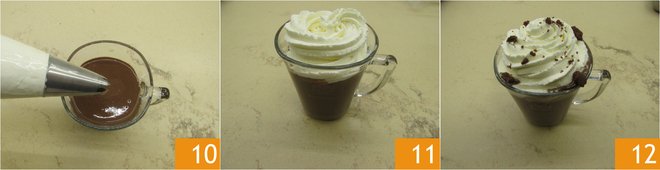 When the cream is firm 7, transfer it to a piping bag with a 1/2 inch star nozzle 8. Pour the biscuit mixture into the cup 9.