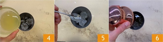 Strain the lemon juice and add it to the other ingredients 4. If desired, you can also add a few drops of pasteurized egg white 5. Secure the lid and shake the shaker firmly 6.