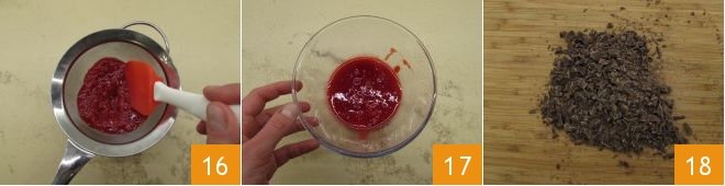 Strain the obtained mixture 16 and set it aside 17. Finely chop the chocolate 18.