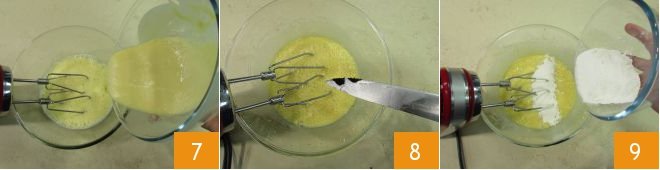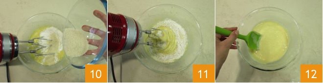 and the almond flour 10. Mix again with the electric whisks 11 until obtaining a homogeneous mixture 12.