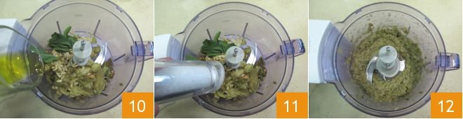 Add the oil 10, salt 11 and pepper and blend until you obtain a smooth consistency 12.