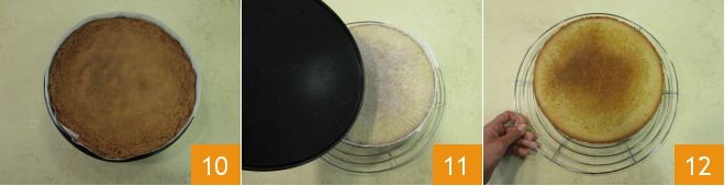 Always perform the toothpick test before removing the cake from the oven 10. Without burning yourself, immediately turn it over onto a wire rack and let it cool completely. Then remove the mold 11 and use your whole wheat sponge cake 12.