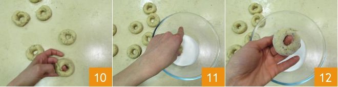 Roll it up by joining the ends, sticking them together well 10. Now you can dip the cookie in sugar 11, on one side 12. You'll should het about 40 cookies.