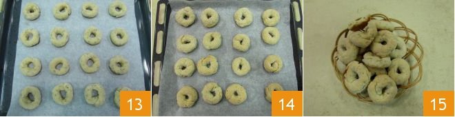 Arrange the cookies by hand on a sheet lined with baking paper, with the sugar part facing upwards 13. Cook in a static oven preheated to 350° (180° C) for about 25 minutes. Then take your wine cookies out of the oven 14, let them cool and serve. 15