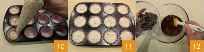 then add it to the batter 7. When the chocolate chips are well combined 8, with the help of a spatula, transfer the batter you obtained into a pastry bag without a nozzle to which you can make an opening 9.