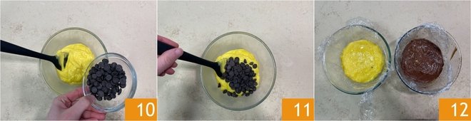 In one of the two, add the chocolate, in drops or chopped 10, and mix immediately 11. At this point, cover with cling film and let cool completely in the refrigerator 12.