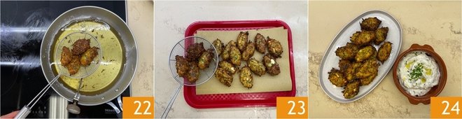 Fry for a couple of minutes or until golden brown 22, then drain the fritters on a tray lined with paper towels 23. Serve your zucchini and feta fritters with yogurt sauce immediately 24!