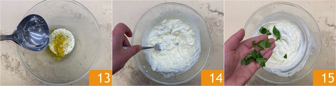 Drop the pasta into the boiling water 10. Meanwhile, in a bowl, place the ricotta, a drizzle of olive oil, and adjust with salt and pepper 11. Also add the lemon zest 12.
